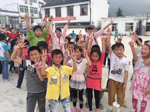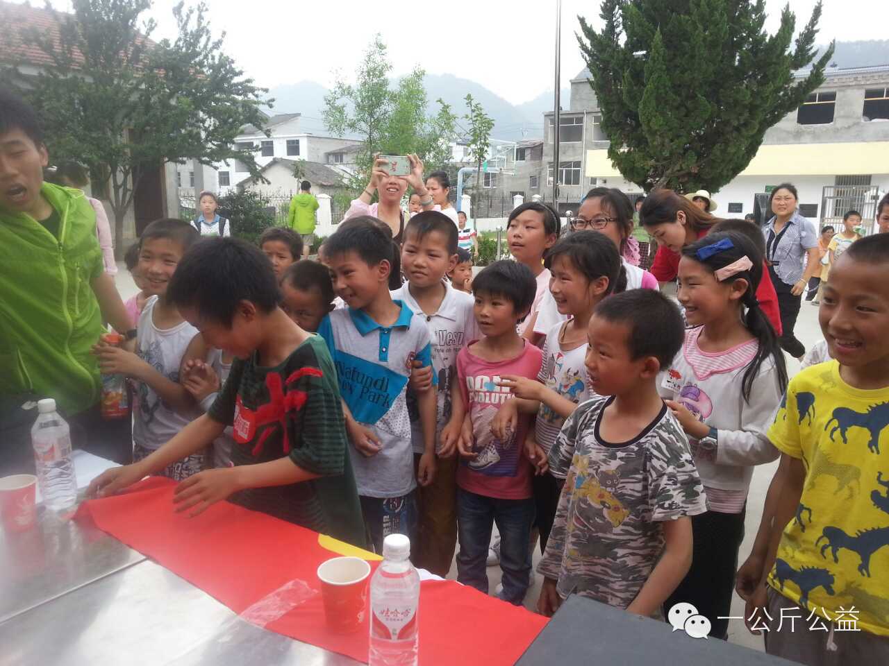 纸河小学的孩子们也一起加入了我们的布置工作中来。