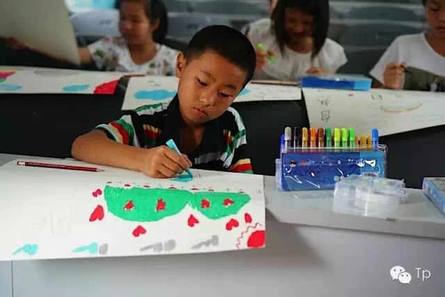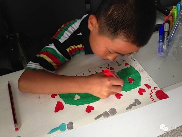 孩子们一边画一边开心的笑着,我则放些音乐让孩子们的灵感能涌现