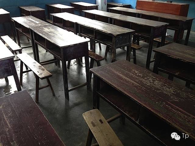 比较陈旧的木质桌椅,同行的志愿者说相比于一些村小这个条件已经非常好了