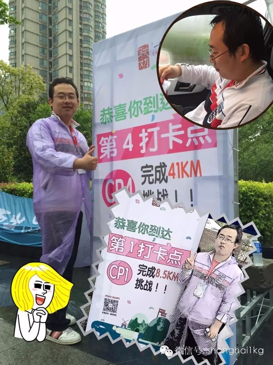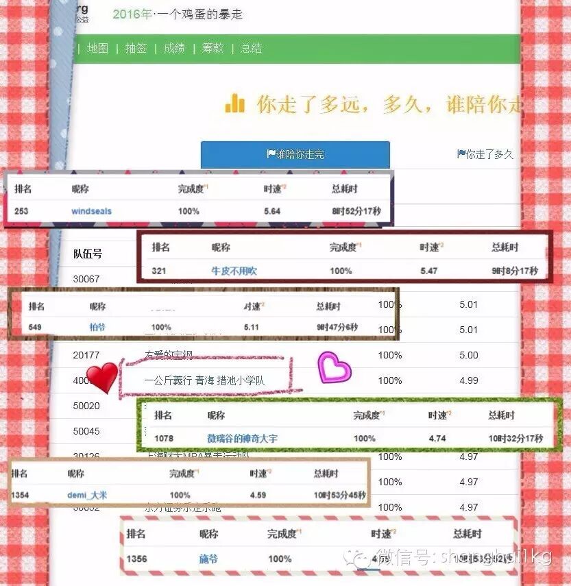 第一名小叮当16:00就已经到达终点了,巾帼不让须眉啊!紧接着16:15牛皮也到达终点。第二梯队柏爷和大宇分别在16:55以及17:30分完成挑战。第三梯队的施爷与大米在18:00携手冲刺50公里大关。大雨中,我们的超级英雄的身影更加显得伟岸起来了!在此宣告,本次暴走挑战胜利!