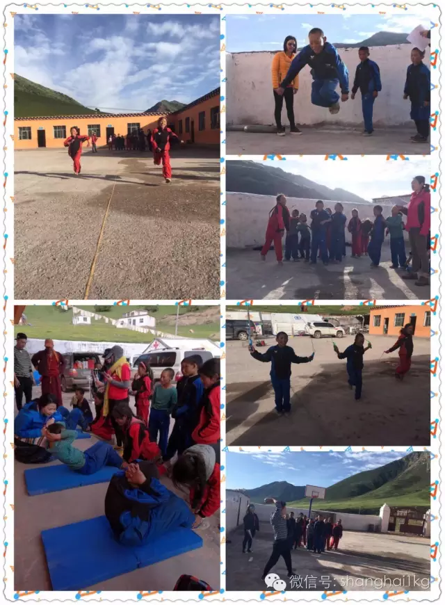 在水泥地上,孩子们除了进行了跑跳投基本项目,还进行了跳绳和仰卧起坐等素质项目。带着自由的灵魂,奔跑在青海这广阔的土地上,好幸福……